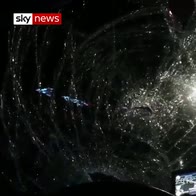 Two men attacked a police car in Glossop with sledgehammers after the officer arrived to investigate a possible burglary.