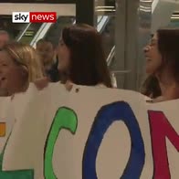 Pro-choice campaigners formed a welcoming committee at Dublin Airport for those coming home to vote.