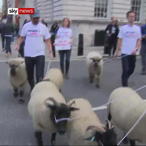Six sheep were led down Whitehall by the People’s Vote campaign group during the launch of the Farmers For A People’s Vote group.