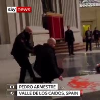 A protester and artist scrawled the words 'For Liberty' over a red dove on General Franco's tomb, before being restrained by security.