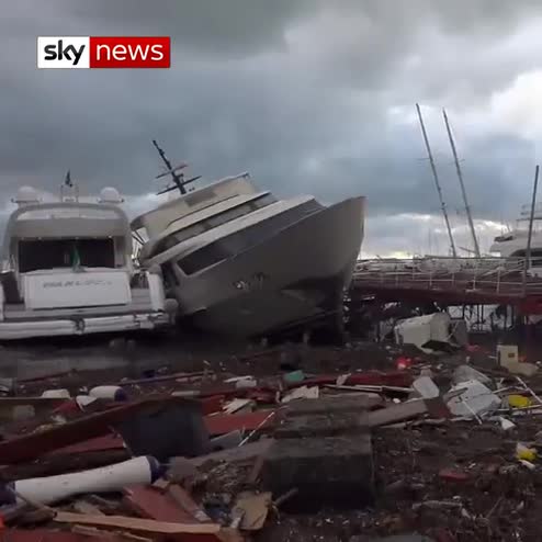 Strong winds and heavy rain have hit Italy, causing serious damage to several expensive yachts in Rapallo.