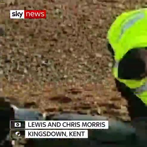 Sky News has obtained footage which appears to show a group of suspected migrants and a dinghy being inspected on a beach in Kent.