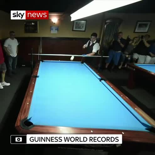 Theo Mihellis, 14, jumped the cue ball over a bar set at 40.96cm in height and potted it.