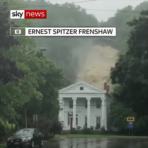 Heavy rain turns a trickle into a waterfall in New York as unusually extreme weather continues to batter the state.