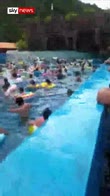 At least 44 people were injured at a water park in China after a wave machine malfunctioned and caused a giant tsunami-like wave.