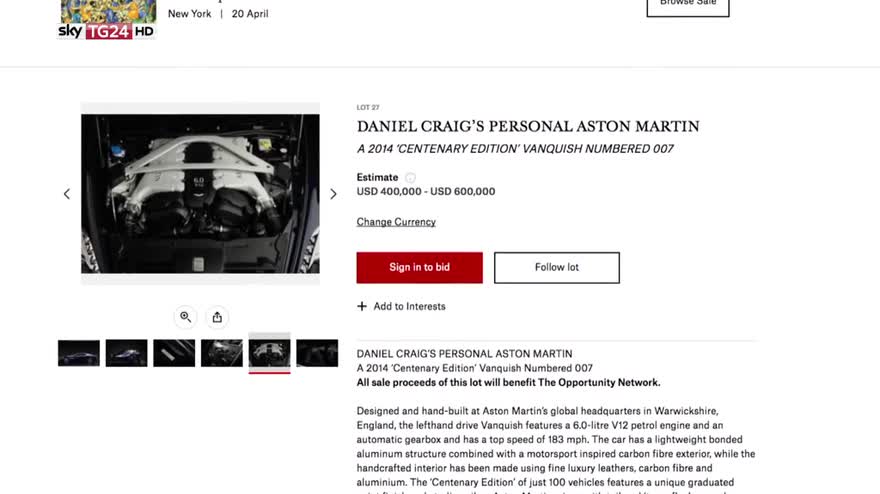 007 vende l'auto, all'asta l'Aston Martin di Daniel Craig