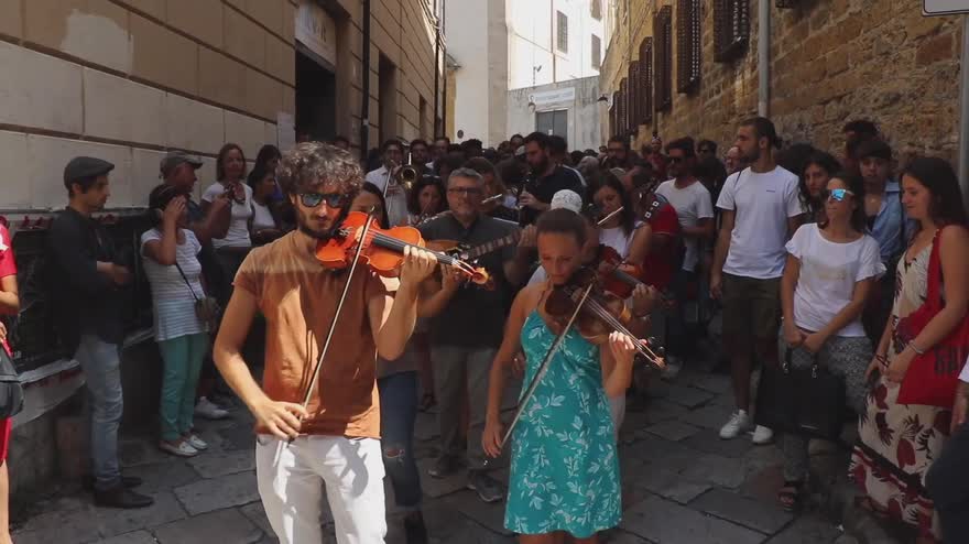 Artisti riuniti per contrastare l’intolleranza e la paura e per promuovere l’integrazione e la solidarietà. Per tre giorni in Sicilia si sono esibiti in una serie di concerti itineranti i musicisti dell’Orchestra multietnica di Arezzo, che riunisce componenti di varie regioni d’Italia e di Albania, Romania, Libano, Gambia, Somalia, Nigeria, Argentina, Colombia, Bangladesh, Russia, Giappone, Svizzera. Con loro gli artisti italiani Dario Brunori, Paolo Benvegnù e Amanda Sandrelli. Hanno suonato nella suggestiva cornice della Valle dei templi, davanti al Tempio di Giunone, con la partecipazione dei giovani migranti e profughi ospiti del centro di accoglienza di Raffadali, coinvolti sul palco in una piccola coreografia sulle note de “L’uomo nero” di Brunori. Poi la carovana si è spostata a Palermo per una serie di concerti al Teatro di Verdura e all’interno del Museo archeologico regionale "Antonio Salinas" e ha fatto tappa anche nel cuore multietnico del capoluogo siciliano, Ballarò, dove insieme a musicisti locali come Libero Reina hanno improvvisato una passeggiata musicale attraversando i vicoli stretti e pieni delle colorate bancarelle dello storico mercato nel centro di Palermo.