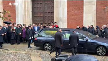 Funerali Vanoni, l'uscita del feretro dalla chiesa di San Marco a Milano