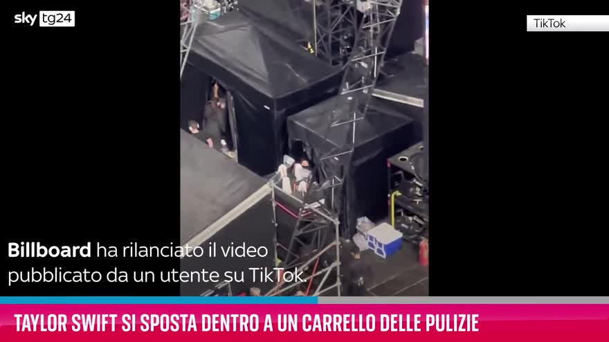Come si muove Taylor Swift dal camerino al backstage, senza essere vista? Semplice: usando un carrello per la biancheria!.