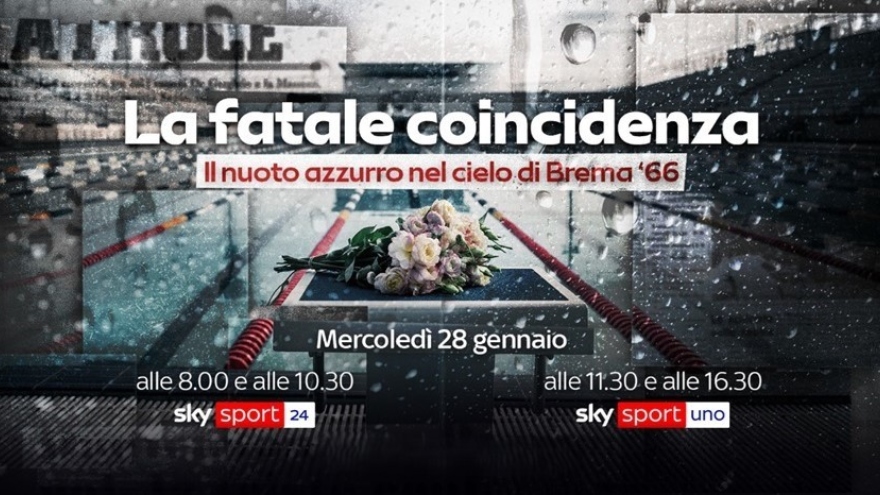 In occasione del 60° anniversario della tragedia aerea di Brema, in cui perse la vita l’intera Nazionale italiana di nuoto, guidata dall’allenatore Paolo Costoli, Sky Sport presenta la nuova produzione originale "La fatale coincidenza. Il nuoto azzurro nel cielo di Brema ’66". Appuntamento mercoledì 28 gennaio alle 8 e alle 10.30 su Sky Sport 24, alle 11.30 e alle 16.30 su Sky Sport Uno e in streaming su NOW. Disponibile on demand.