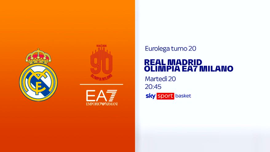 Eurolega, 20^ turno: Real Mdrid-Olimpia Milano su Sky