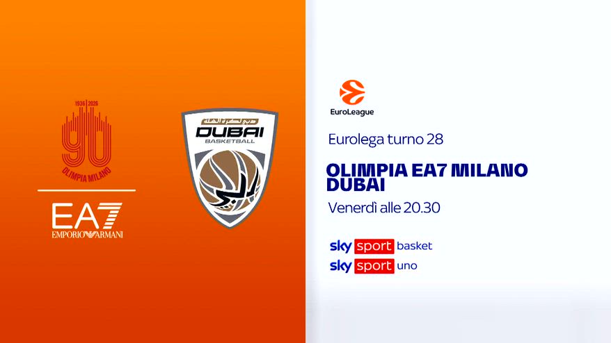 Eurolega, 28^ turno: Olimpia Milano-Dubai su Sky