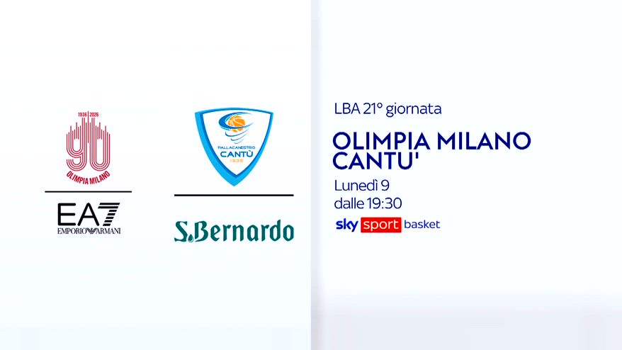 Serie A basket, 21^ turno: Olimpia Milano-Cantù su Sky