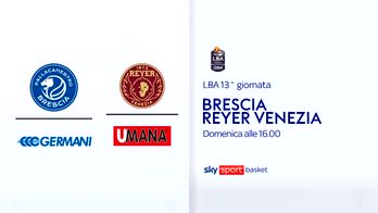 Dopo la sconfitta nel big match di Bologna, la Germani Brescia ospita l’Umana Reyer Venezia per riprendere la marcia in vetta alla classifica. Ad Amedeo Della Valle mancano 21 punti per raggiungere quota 4.500 in Serie A: la sfida in diretta alle 16 su Sky Sport Uno, Sky Sport Basket e in streaming su NOW col commento di Davide Fumagalli e Andrea Meneghin .