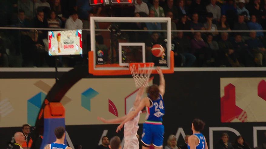 Super giocata di Francesco Ferrari: al suo esordio con la nazionale maggiore, l’MVP degli ultimi Europei under 20 si è esibito in una super stoppata in aiuto, volando in cielo con tempo perfetti per fermare la conclusione dell’avversario e lanciare il contropiede, chiuso col canestro in rovesciata di Davide Casarin.