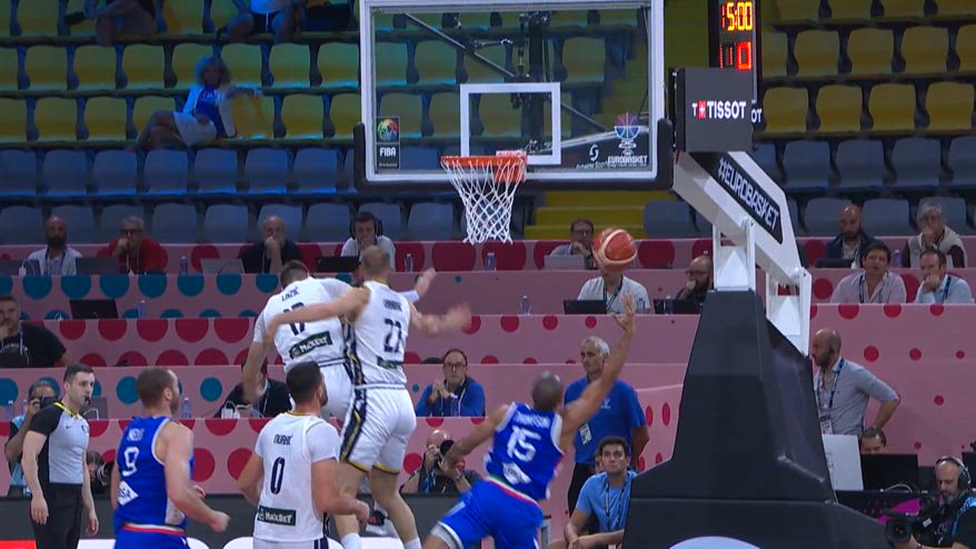 Canestro da circo di Darius Thompson, uno dei migliori dell'Italia vincitrice contro la Bosnia. Sfruttando il blocco di Melli, il numero 15 si infila in mezzo alla difesa avversaria e attacca il ferro da destra. Due uomini provano a stopparlo, ma Thompson con un tiro ad effetto trova il tabellone e il fallo per il tiro libero supplementare. GUARDA LA GIOCATA.