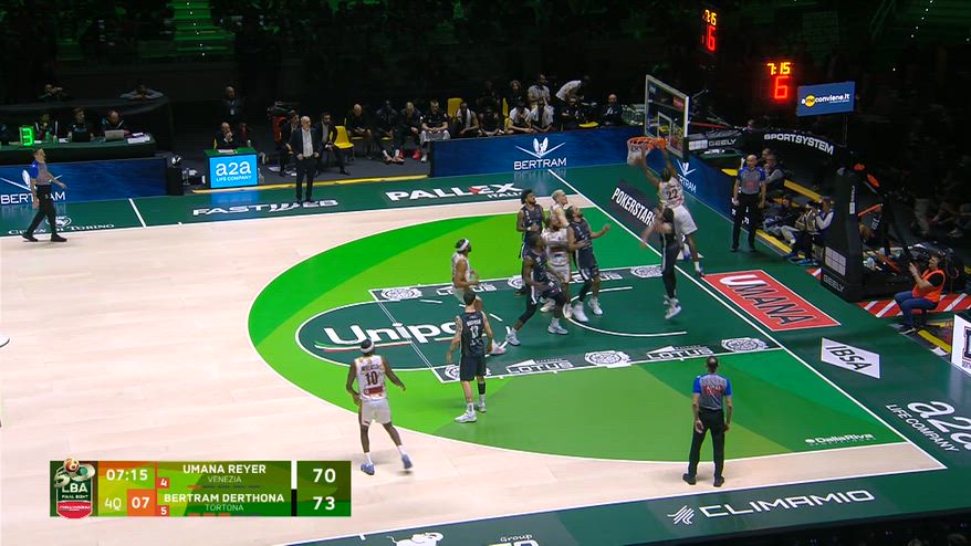Grande giocata di Jordan Parks nel 4° quarto del quarto di finale di Coppa Italia tra Venezia e Tortona. L’americano della Reyer vola alto sull’alley oop di R.J. Cole e inchioda una schiacciata davvero da highlights della Final Eight di Torino
