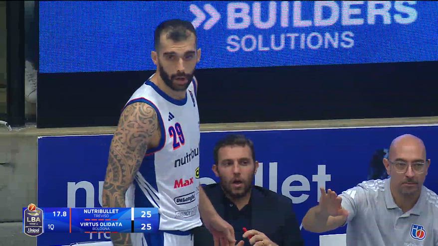 A 17 secondi dalla fine del 1° quarto, nel tentativo di piazzare in campo il miglior quintetto possibile per difendere sull’ultimo possesso in mano agli avversari, coach Alessandro Rossi effettua dei cambi ma la comunicazione con i suoi giocatori non funziona benissimo. Per qualche istante sul parquet rimangono sei giocatori di Treviso, gli arbitri richiamano tutti al rispetto della più basilare delle regole e il gioco riprende regolare dopo pochi secondi.