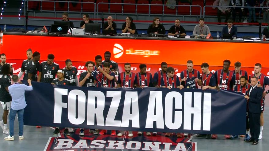 Prima della palla a due della sfida di Eurolega tra Baskonia e Virtus Bologna, l’intero palazzetto di Vitoria si è unito in un applauso per Achille Polonara, ex di entrambe le squadre. I giocatori delle due squadre hanno tenuto in mano uno striscione sul quale era scritto “FORZA ACHI”, mentre Sedekerskis mostrava una maglia del giocatore azzurro recentemente uscito da un coma indotto..