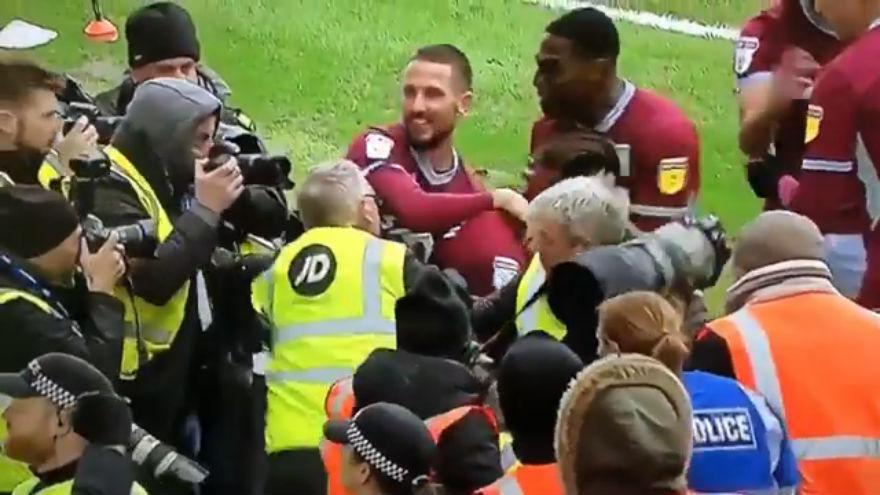 Derby Birmingham, Grealish esulta ma uno steward lo spintona