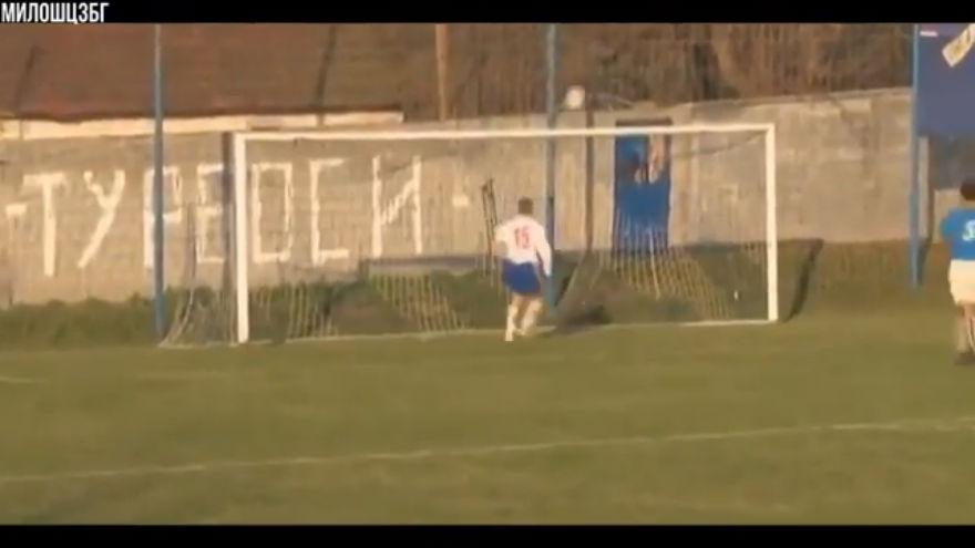 Portiere e difensore regalano un pallone insperato per l'attaccante. E lui, a porta vuota, è capace di fare questo...