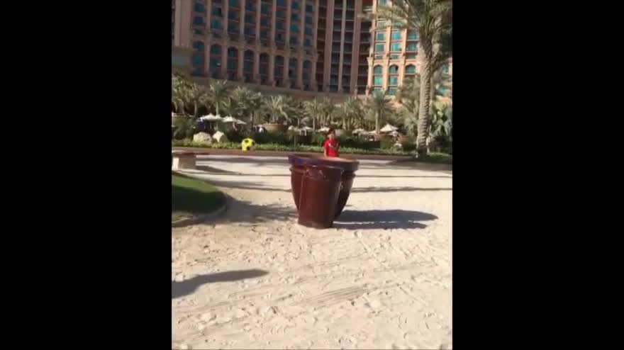 Il centrocampista del Bayern è in vacanza a Dubai e dimostra tutta la sua tecnica realizzando un canestro con i piedi.