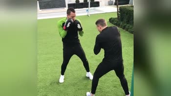 Il capitano del Chelsea si tiene in allenamento con una sessione mattutina di boxe con il suo personal trainer.