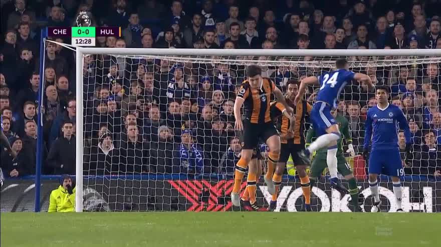 Al 12' del primo tempo di Chelsea-Hull City lo scontro testa contro testa fra i due difensoriì.