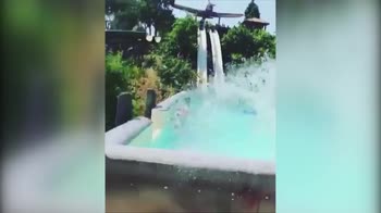 Balotelli vola dallo scivolo, il tuffo è da brividi