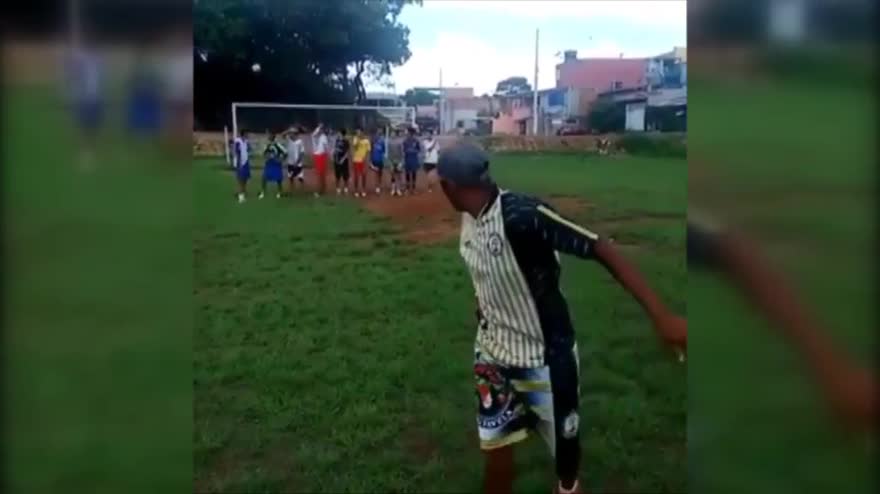 Dieci uomini in barriera: punizione di tacco nel sette