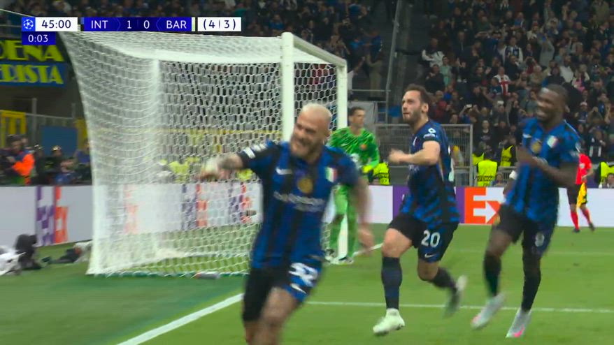 Calhanoglu, il gol su rigore in Inter-Barcellona