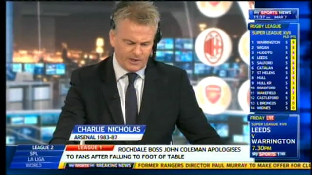 Charlie Nicholas, ex attaccante dell'Arsenal, è attualmente un apprezzato commentatore tv britannico, leggermente di parte.