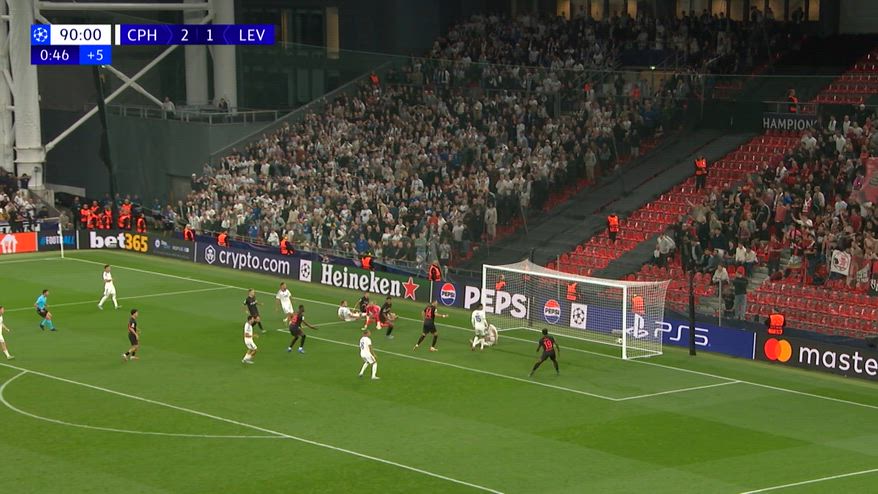 Un punto in pieno recupero guadagnato dal Bayer, mentre il Copenaghen sciupa il secondo vantaggio: Echeverri (obiettivo della Roma in estate) mette un tiro-cross in mezzo e l'ex Cagliari si fa un maldestro autogol che vale il definitivo 2-2.