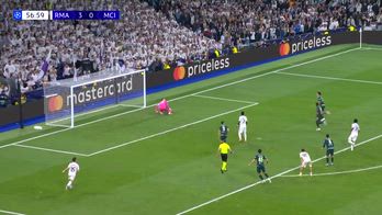 Dopo la tripletta show di Valverde, ci pensa Donnarumma ad evitare guai peggiori per il suo City parando a Vinicius il rigore del possibile 4-0 (che lui stesso aveva causato in uscita sul brasiliano). Riguarda qui la sua parata .
