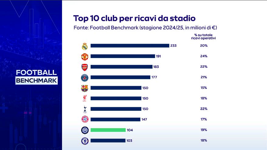 Luca Marchetti e Andrea Sartori (Football Benchmark) analizzano l’impatto economico dei principali stadi europei sui conti dei club.