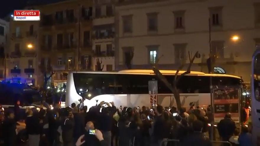 Migliaia di tifosi prendono d'assalto il bus delle merengues mentre si avvia verso il San Paolo.