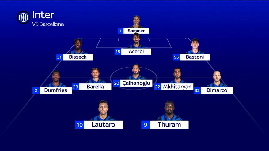 Barça-Inter, Thuram in campo dal 1' al fianco di Lautaro