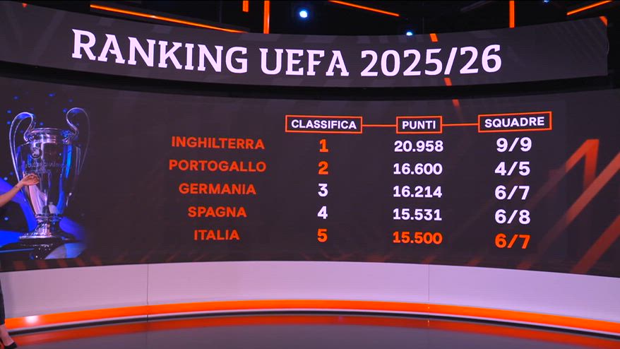 Nel VIDEO Vittoria Orlando fa il punto sulla situazione del ranking per nazioni che potrebbe regalare all'Italia una quinta squadra da portare in Champions la prossima stagione. L'Inghilterra è già si cura di avere 5 formazioni anche il prossimo anno. Al secondo posto c'è il Portogallo mentre Germania, Spagna e Italia sono più indietro ma ancora con le squadre che restano in lizza.