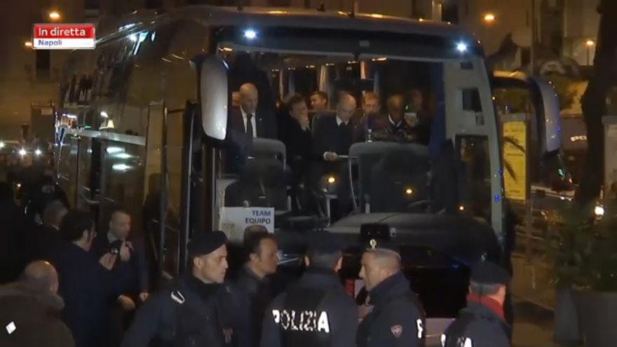 Cristiano Ronaldo e il Real Madrid escono dall'albergo in pieno centro al Napoli: boato delle migliaia di tifosi presenti.