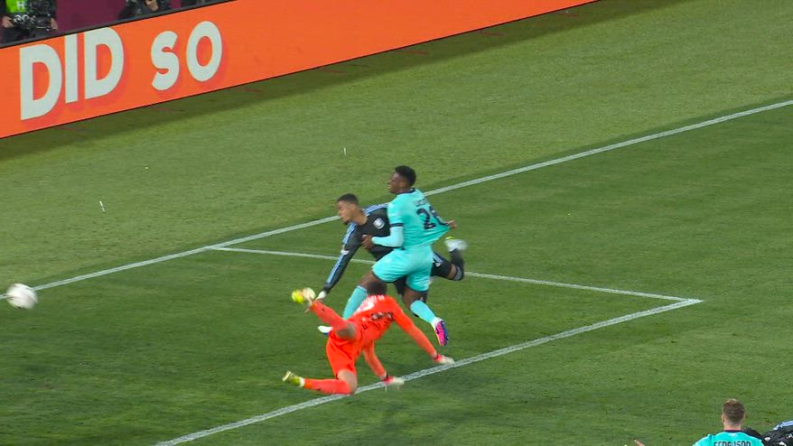 Un'uscita fuori tempo di Ravaglia spiana la strada a Konsa, che sblocca l'andata dei quarti di finale di Europa League tra Bologna e Aston Villa. I rossoblù, dopo essersi visti annullare un gol per fuorigioco millimetrico di Castro e aver colpito una traversa con Ferguson, si sono ritrovati sotto al 44': Ravaglia è uscito a vuoto in occasione di un calcio d'angolo, con il difensore avversario che ha potuto depositare facilmente il pallone in porta.