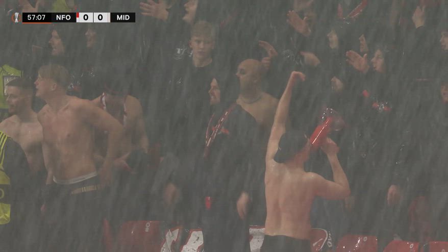 Tifosi Midtjylland senza paura: a petto nudo sotto diluvio