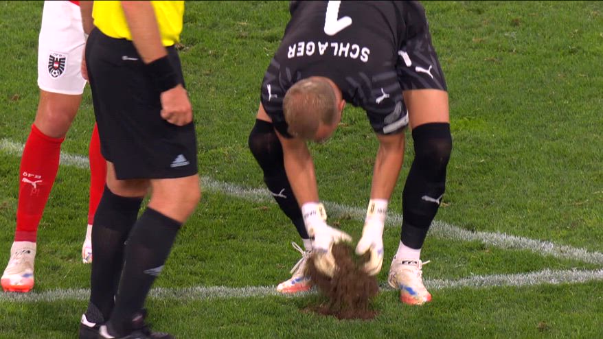 Austria-Cipro è stata sospesa per 5 minuti a causa di una buca profonda creata involontariamente sul terreno di gioco. Gli addetti al campo hanno dovuto rizollare il prato per tappare il buco e permettere così ai giocatori di riprendere la partita in sicurezza.