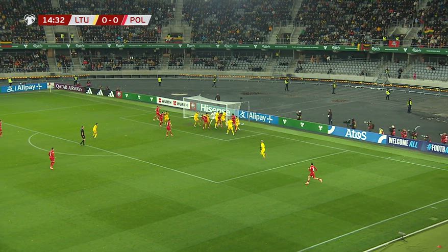 La Polonia segna la rete dell'1-0 contro la Lituania... direttamente da calcio d'angolo! Su corner da destra, infatti, arriva il cross in area di Szymanski, con il pallone che termina in porta senza trovare nessuna deviazione.