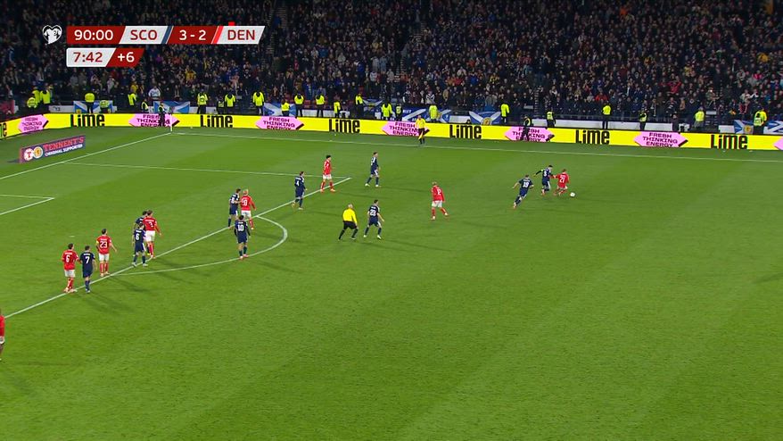La Scozia è anche una delle patrie del rugby e nell'occasione McLean si traveste da rugbysta e piazza un calcio che vale molto più di tre punti. Legittima e conferma la qualificazione ai Mondiali per la Scozia a 28 anni dall'ultima volta. Con la rete del 4-2 demolisce ogni speranza per la Danimarca di arrivare al pareggio con un improbabile colpo di coda.