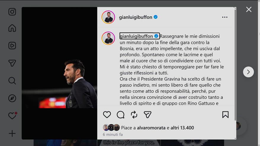 Italia, Buffon si dimette da capo delegazione: il messaggio