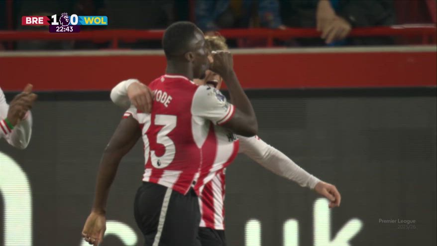 Kayode, il primo gol in Premier League col Brentford