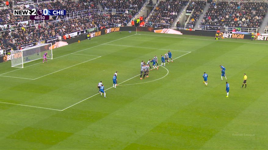 Dopo un difficile primo tempo contro il Newcastle, chiuso con il punteggio di 2-0 per i Magpies, il Chelsea ritorna in partita al 49' con una splendida punizione di Reece James. Il capitano dei Blues riesce a dare un effetto incredibile al pallone, che si insacca nell'angolino basso alla destra di Ramsdale, non perfetto in questa circostanza. Punizione da far vedere nelle scuole calcio.