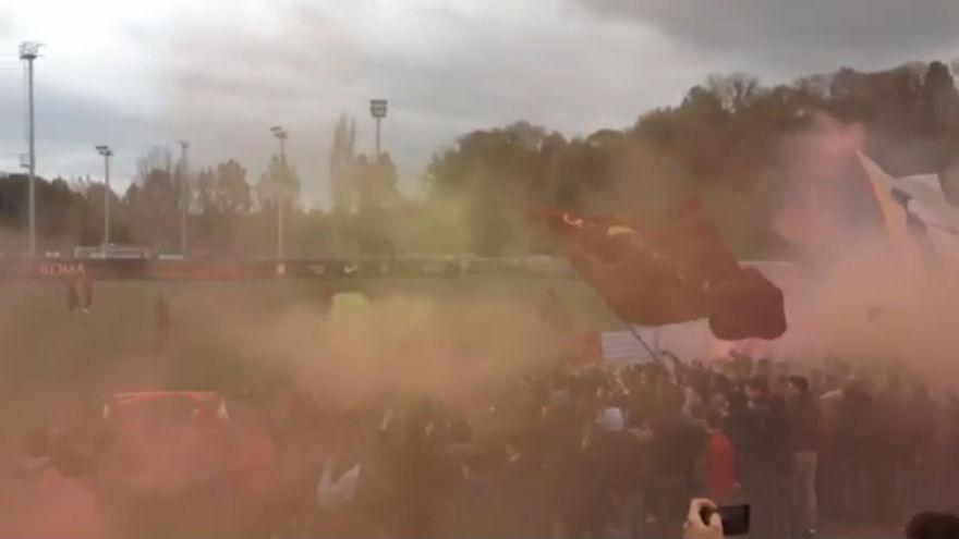 Arriva il Napoli, la carica dei tifosi della Roma a Trigoria