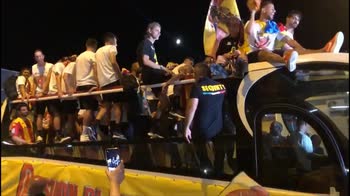 Benevento in A, festa scatenata dei giocatori sul pullman