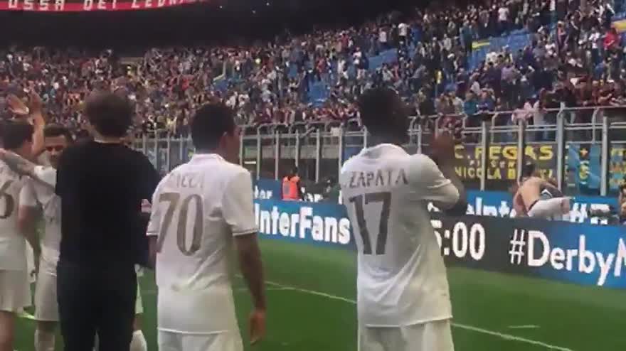 Milan, la festa dei giocatori sotto la curva dopo il derby
